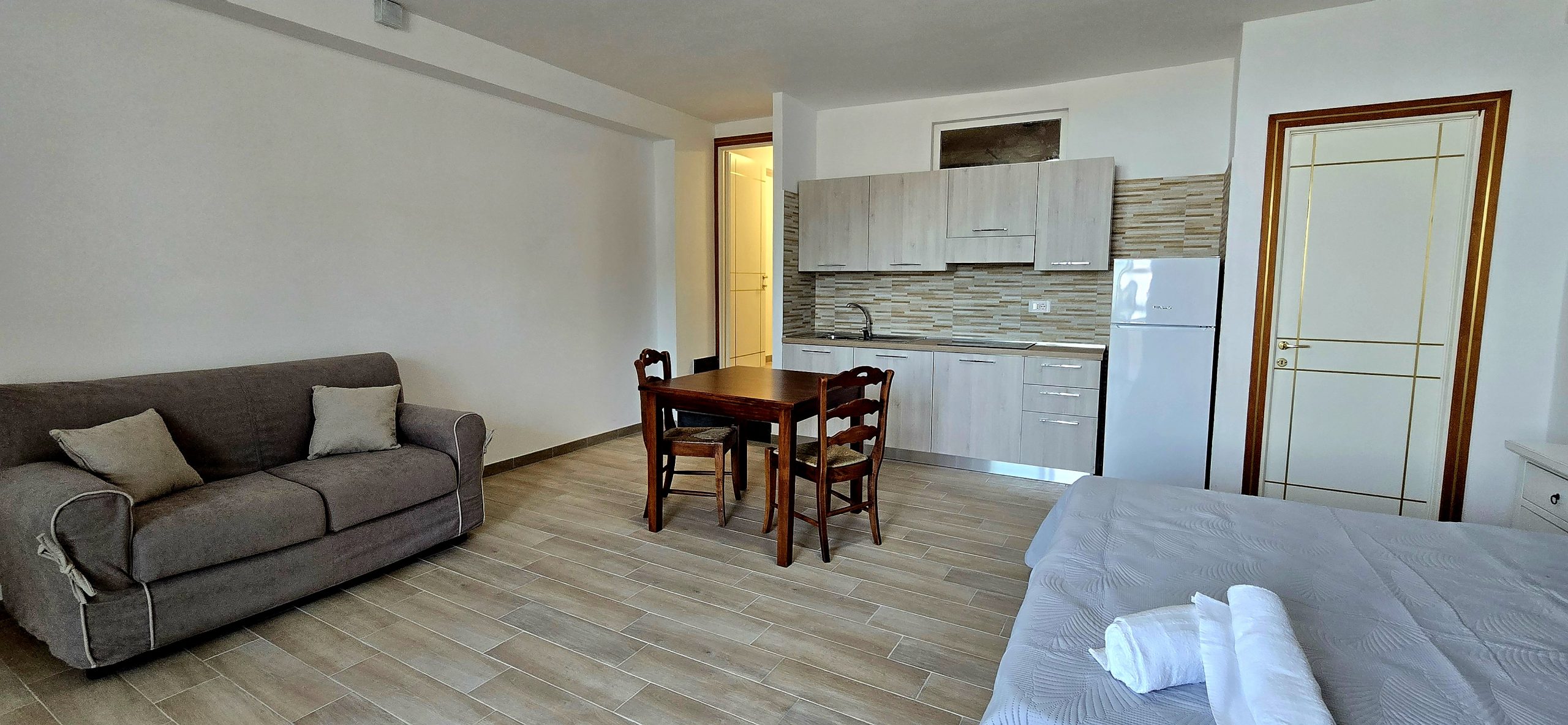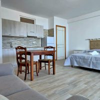 Appartamenti monolocali completamente attrezzati, con piani cottura a induzione, frigo e freezer, bagni con box doccia, ideali per una vacanza all’insegna del comfort e della praticità. Gli spazi sono arredati con divanetti accoglienti e dotati di climatizzatore, così da garantirti il massimo relax in ogni stagione.