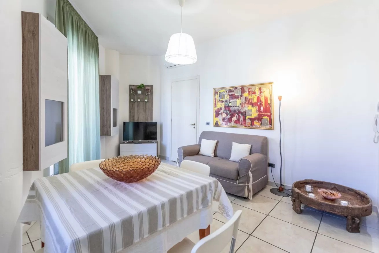 Tutti gli appartamenti, luminosi, accoglienti, arredati con gusto e dotati di TV color, aria condizionata, sono dotati di soggiorno con divano letto matrimoniale o divano 2 posti, cucina non abitabile, camera matrimoniale, camera con 2 letti singoli e accoppiabili, bagno con doccia e balconi attrezzati con vista mare laterale