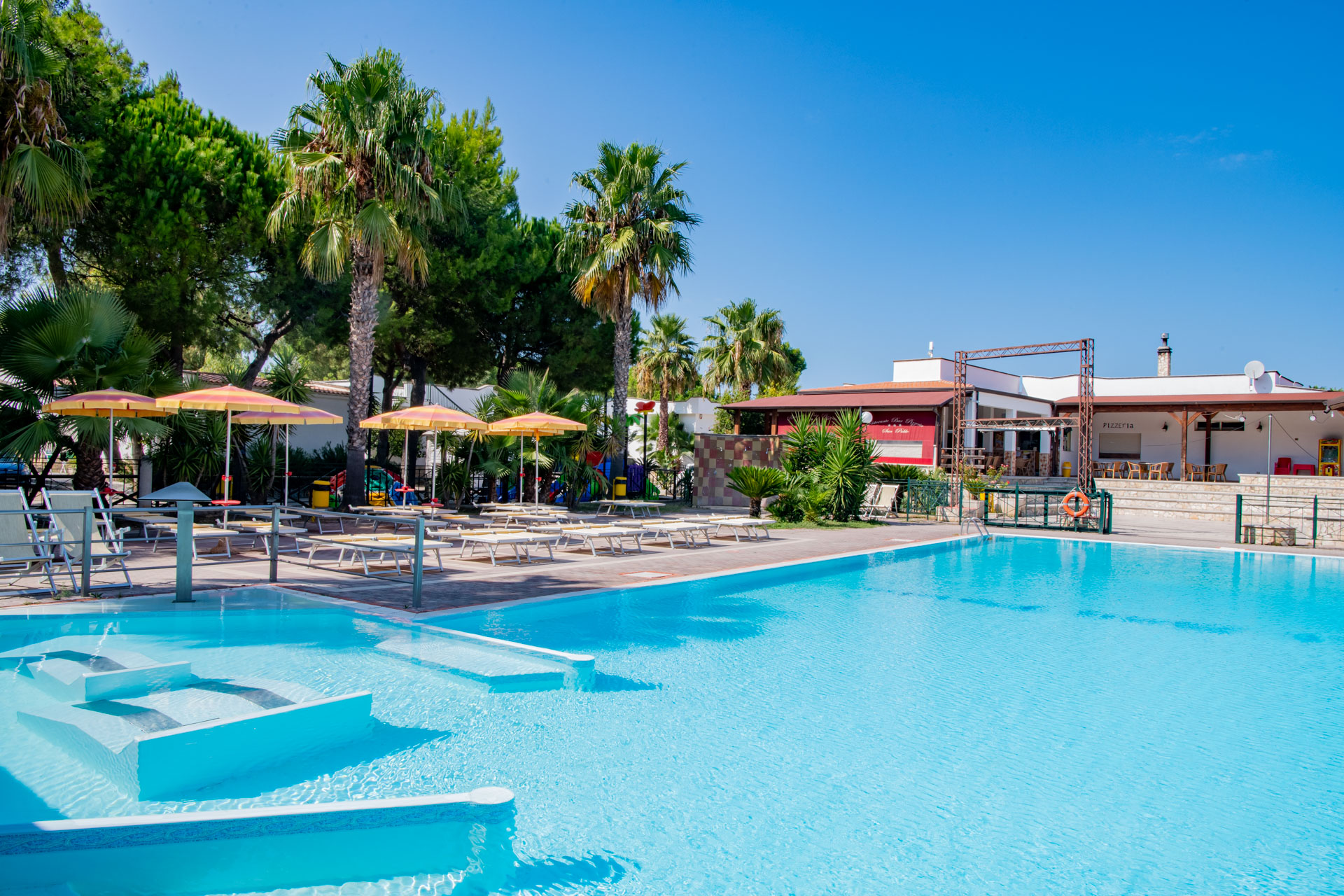 Nel cuore del villaggio troverete un’ampia piscina fornita di lettini, vasca idromassaggio per un bagno rilassante, piscina per i bambini, palestra, campo da tennis, campo di calcio, parco giochi per bambini, ping pong, parcheggio, bar, ristorante, pizzeria, tavola calda, farmacia e l’anfiteatro dove l’esperto staff di animazione organizza, da giugno a settembre, gare, tornei, giochi per bambini e spettacoli, coinvolgendo con simpatia chi lo desidera. Dotazione del villaggio: ristorante, sala TV-sat, parcheggio, bar pizzeria (piatti d’asporto) farmacia, spiaggia privata di sabbia fine attrezzata e distante dalla direzione mt.150. Zona barbecue ad uso comune, telefono pubblico e lavatrice a gettoni. Market, macelleria, pescheria, frutta/verdura, edicola e tabacchi sono adiacenti al villaggio.