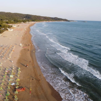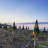 A soli 150 metri dalla propria spiaggia privata di sabbia fine, molto ampia, con fondale che degrada dolcemente ed attrezzata con ombrelloni, lettini e sdraio.